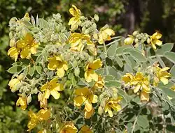 Senna lindheimeriana, the velvet leaf senna, is a species of flowering plant in the family Fabaceae.[2][3][4] It is native to the US states of Arizona, New Mexico, and Texas, and to eastern Mexico.[1] A perennial typically 1.5 m (5 ft) tall, it is hardy to USDA zone 8a, and is recommended for xeriscaping and for feeding birds, butterflies and bumblebees.[4][3] It is thought to be lethally toxic to livestock, but is so foul-smelling and unpalatable that only starving mammals will consume it.[5]