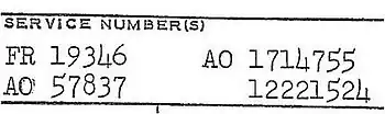 2. ^ National Personnel Records Center, Military Operations Branch, "Service number index and registry of retired, deceased, and discharged military personnel" (2007)