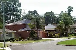 The suburb is predominantly residential. Florida Place, a cul-de-sac, is typical of many residential streets in Seven Hills especially those south of the railway. The buildings show a transition from the mid 20th century single storey mixed construction dwellings with an average of approx 100 m2 floorspace on 600 to 900 m2 blocks to replacement two storey brick veneer dwellings built in the 2000s with twice to three times the floorspace.