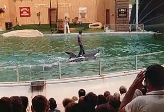 - Newtka (also spelled Nootka) the killer whale: A 6,000-pound (2,700 kg) and 18-foot (5.5 m) female orca that resided in the park's largest animal performance stadium. This arena went by many names including Indian Ocean Pool, Killer Whale Stadium, and 7-eleven Killer Whale Stadium. Trained by Larry Lawrence, Newtka lived in the park during all four years of operation and was considered the main attraction. After the 1975 season she was sold for $125,000 to Marineland and Game Farm Canada, joining their current orca Kandu.[7]