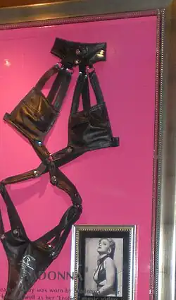 The exotic black leather one-piece stage outfit worn by Madonna in the Sex book, as well as in the "Erotica" music video.