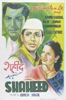 Shaheed (Hindi: शहीद, 'The Martyr') is a 1948 Bollywood Indian romance film, written and directed by Ramesh Saigal. The film depicts India's struggle for independence. It starred Dilip Kumar, Kamini Kaushal, Chandra Mohan, and Leela Chitnis. It had music by Ghulam Haider. Shaheed was the Highest grossing indian movie of 1948.[1]