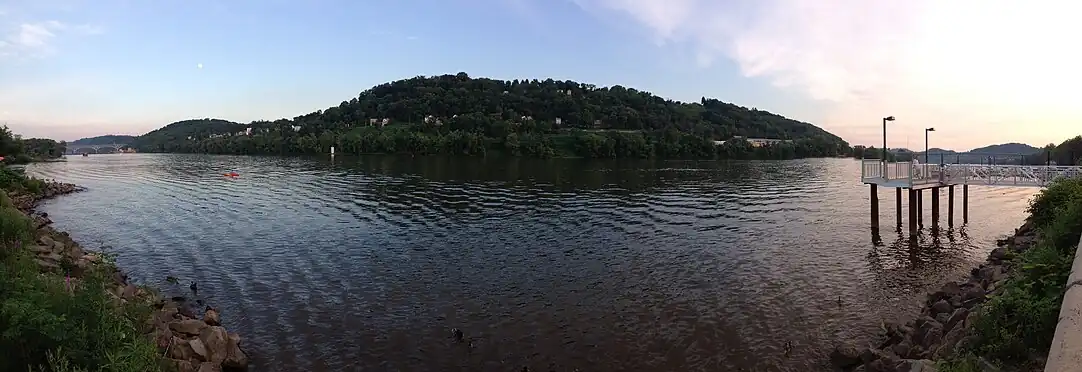 The Sharpsburg Water Tower as viewed from the Allegheny River.