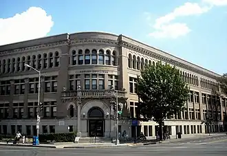 From 1902 until 1928 the building housed the William McKinley Manual Training School. It was a school for white students and opened the same time as Armstrong Manual Training School for African Americans.[4] They were part of an educational trend that began in the late 19th century of developing schools that taught industrial education along with the more traditional academic curriculum that prepared students for college. When McKinley moved to a larger campus in 1928 the building became Robert Gould Shaw Junior High School, which had previously opened for black students on M Street in 1921. The new Shaw was also a blacks-only school until segregation ended, but it remained primarily African-American. The school became overcrowded and poorly maintained. As it started to deteriorate the building was referred to as “Shameful Shaw.”[4] It was illustrative of the city's neglect of African Americans. In 1977, Shaw was moved to a new school at 9th Street and Rhode Island Avenue NW.[5] In 2008, Shaw again moved, this time to the Garnet-Patterson school building at 10th and V Streets NW, where it became known as Shaw Middle School at Garnet-Patterson. In 2013, Shaw at Garnet-Patterson closed due to low enrollment following the murder of its principal, Brian Betts.[6] Shaw had a prolific music program with its band marching in the Macy's parade, the Rose Bowl and the Gimbel's parade in Philadelphia, PA. The band was directed by Mr. Lloyd Hoover. The old Shaw Junior High building now houses apartments.