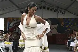 Ethiopian model and filmmaker Amleset Muchie wearing a traditional shawl.