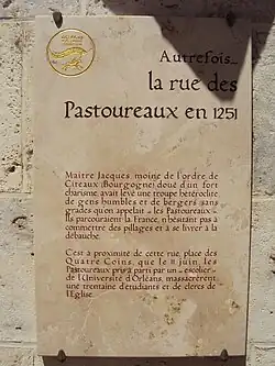 The Master claimed to have been visited by the Virgin Mary, who instructed him to lead the shepherds (pastoreaux, hence the common name Crusade of the Pastoreaux) of France to the Holy Land to rescue Louis. His followers, said to number 60,000, were mostly young peasants, men, women, and children, from Brabant, Hainaut, Flanders, and Picardy. They followed him to Paris in May, where the Master met with Blanche of Castile. Chronicler Matthew Paris thought he was an impostor, and that he was actually one of the leaders of the Children's Crusade from earlier in the century.[3] Their movement in the city was restricted; they were not allowed to cross to the Left Bank, where the University of Paris was located, as Blanche perhaps feared another disturbance on the scale of the 1229 University of Paris strike.