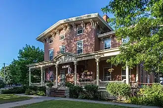 Sherman House is a historic home located at Glens Falls, Warren County, New York. It is a large pink brick building with a profusely bracketed roof and octagonal cupola. It consists of a 2+1⁄2-story rectangular block to which has been added four porches and three wings. It is thought to date to the 1840s. The front verandah and rear wing date to about 1900 when it was occupied by the Bemis Eye Sanitarium.[2]