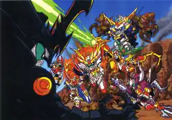 Characters this time round are derived from the mobile weapons of Mobile Fighter G Gundam. The main protagonist and antagonist both hold relationships to characters of Densetsu no Daishougun Hen. And this time there is a bigger scale crossover with characters from the SD Command Senki, Knight Gundam and Gundlander worlds.