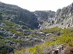 The outcropping materials are mainly slate and quartzites of the Ordovician and Silurian periods, with outcrops in some areas (El Cardoso, Hiendelaencina, etc.) of Precambrians gneiss. The natural area of Ayllón extends towards the south following the valleys of the main rivers (Lozoya, Jarama, Sorbe, Bornova, Cristóbal), in whose canyons habitats and communities of great ecological value are located. There are also periglacial reliefs (quartzite cliffs) and remains of glacial activity in the vicinity of Pico del Lobo.[3]