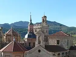 The main mountains of the range rising behind the Santa María de Guadalupe monastery