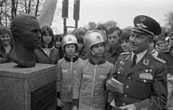 - ^ Fiß, Gerhard (2015). "Aus der Laudatio zur Wiederaufstellung der Büste Sigmund Jähns im Statistischen Landesamt des Freistaates Sachsen am 22. Februar 2008" [From the laudatory Speech for the Re-installation of the Bust of Sigmund Jähn in the State Statistical Office of the Free State of Saxony on 22 February 2008]. In Jäkel, Horst (ed.). Heimat DDR. Erlebnisse. Betrachtungen. Erkenntnisse. Dokumente [Homeland GDR: Experiences, Observations, Insights, Documents] (in German). Schkeuditz: GNN-Verlag. p. 353. ISBN 978-3-89819-416-7.