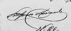 Sinforoso Amoedo had a natural son named Joaquín Ramón Amoedo, who served for several periods as Intendente municipal of Quilmes.[7] He died of yellow fever on April 23, 1871, being buried in the Cementerio de la Recoleta. His family received a posthumous award for his heroic work in the fight against the epidemic.[8]