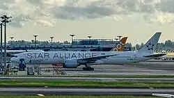 The aircraft involved was a 16-year-old Boeing 777-312ER,[a] registered as 9V-SWM, with manufacturer serial number 34578 and line number 701. It was equipped with two General Electric GE90-115B engines and was delivered to Singapore Airlines in February 2008.[1][2][3] It was one of two Singapore Airlines Boeing 777-300ERs to be temporarily converted into freighters in 2020, as the airline had tapped into freight as an alternative revenue stream amid depressed passenger demand during the COVID-19 pandemic.[4][1]