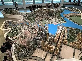 The gallery, which had an initial cost of 4.2 million Singapore dollars, was opened on 27 January 1999 by Lim Hng Kiang, who was National Development Minister at the time.[2] The gallery was initially projected to attract 36,000 visitors a year over the first three years of its existence, most of whom were expected to be students or local community groups.[2] In 2004, the gallery underwent a major renovation of 80% of its exhibits. Upon its reopening on 3 December 2004, the Gallery was renamed the Singapore City Gallery. The Gallery's key exhibit, the Central Area Model, was also expanded to include areas which were formerly not shown, such as Orchard Road, Kampong Glam, Little India, Bras Basah, and Bugis. The model was also updated to include the latest plans for Marina Bay.[4] In 2008, the Gallery received its millionth visitor.[5] In 2011, the gallery was redesigned again, and reopened in August of that year, to include new exhibits such as a 270-degree panorama of life in Singapore and an 8-player multimedia game on urban planning. This latest version won honours in the Singapore Design Award 2012 for both the Events/Exhibitions category and the Multidisciplinary Design category.[6][7] The Gallery now receives about 150,000 visitors annually.[3]