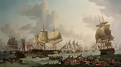 3. ^ From July 1793, Bowyer may have used the ship of the line HMS Brunswick as his flagship.[3][14]
