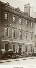 Smith House, Angel Row, Nottingham, in 1916 and 2013, town house and office built by Sir George Smith, 1st Baronet. Called by his son "Bromley House" and later used as Nottingham Subscription Library. Said to have been "the best built house in town"[3]