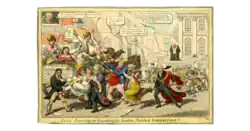 City scavengers cleansing the London streets of impurities!!, 1816 satirical print directed at the efforts of Lord Mayor Matthew Wood (right, with broom) to reduce overt prostitution in London