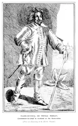 Major-General Sir Thomas Morgan, 1st Baronet (1604 – 13 April 1679) was a professional soldier from Wales who fought for Parliament during the Wars of the Three Kingdoms. As deputy Commander-in-Chief, Scotland, he played an important role in the 1660 Stuart Restoration and was rewarded with being made a baronet.