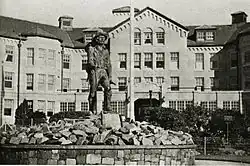 A statue entitled The Prospector, sculpted by Alonzo Victor Lewis, serves as the centerpiece of the grounds of the Sitka Pioneer Home. The sculpture was supposed to be modeled after real-life pioneer William Clark "Skagway Bill" Fonda, a resident of Skagway and originally of Fonda, New York. This statue is the larger of two models that Lewis created. The smaller of the pair sits in Seattle's Klondike Gold Rush National Historic Park in Pioneer Square. After more than three tons of clay and 21 years of fundraising, the sculpture was finally shipped to Sitka in time for its dedication at 1949's Alaska Day.[5]