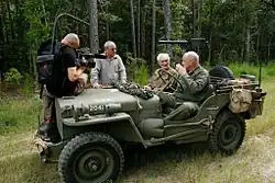 Cinematographer Ronen Schechner, director David Fisher, Gunskirchen liberator and WWII veteran Mickey Dorsey and Pat Waters (son of General George S. Patton) during the making of Six Million And One