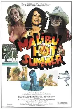 Sizzle Beach, U.S.A., also known as Malibu Hot Summer, is a 1981 independent film directed by Richard Brander, and starring Terry Congie, Leslie Brander, Roselyn Royce, and Kevin Costner in his film debut. It was filmed from 1978 to 1979.[2][3] Troma re-released the film in 1986.[4][5]