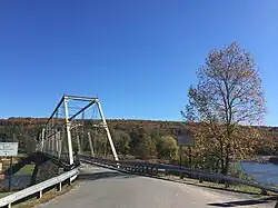 The Skinners Falls–Milanville Bridge was a bridge spanning the Delaware River between Milanville, Damascus Township, Pennsylvania and the hamlet of Skinners Falls in Cochecton, New York from 1902 to 2025. The 466.5-foot (142.2 m) long Baltimore truss bridge carried traffic of Calkins Road (State Route 1002) in Milanville and Skinners Falls Road in Cochecton over a single wooden lane of traffic until its final closure in October 2019. The bridge was one of two bridges on the National Register of Historic Places along the river in Sullivan County (the other being Roebling's Delaware Aqueduct), and was a contributing member of the Milanville Historic District.