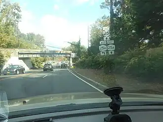 Standing at a height of approximately 50 feet (15 meters) and measuring 484 feet (148 meters) in length, the Smithtown Trestle carries the LIRR's Port Jefferson Branch over the valley below, Jericho Turnpike (NY 25), and the Nissequogue River.[1][2][3][4] The viaduct is constructed of steel and consists of 12 spans.[3][4]