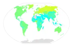 North America is a fairly recent settled continent, made up of the United States, Canada, Mexico, Central America, and the Caribbean. It was built by an amalgamation of wealth, ideas, culture, and practices. North America is highly advanced intellectually, technologically, and traditionally. This advantageous character of North American nations has caused a high average life expectancy of 75 years for males and 80 years for females. This leads to the conclusion that North America has cultivated a comparatively healthy society. As North America contains several core nations, the growing economies in those nations are able to maintain and develop medical institutions. This subsequently provides more access to health care for American citizens but health care is not universal. North America is known for being a leading nation in regards to industrialization and modernization, but the United States lacks federal laws regarding health care as a basic human right. This lag of health care security causes subsequent issues with pharmaceutical competition, lack of care for the elderly, and little attention to alternative medicine.[35] Health care and education are plentiful at a price and illness still persists for many reasons.[36] A main reason is that a lower- and middle-class population still exists in plentiful numbers, maintaining a group that is highly vulnerable to physical ailment.