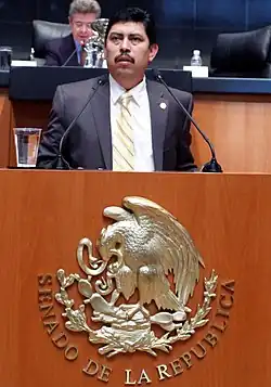 In the 2012 general election he was elected to the Senate, representing Guerrero for the PRD.[1] On 14 December 2015 he left the PRD and, on 4 February 2016, joined the PRI's parliamentary group.[9]