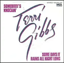 "Somebody's Knockin'" is a song recorded by American country music singer Terri Gibbs. It was released in October 1980 as her debut single and title track from her album Somebody's Knockin'. It was co-written by Jerry Gillespie and Ed Penney. Penney was a record company executive who liked Gibbs's voice when he first heard her audition tape, but felt she needed stronger material.[2] Penney was a former Boston disc jockey who had promoted records and written a number of songs before moving to Nashville.[3] He was the producer of "Somebody's Knockin'" and became Terri Gibbs's manager.[4]