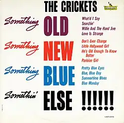 Something Old, Something New, Something Blue, Somethin' Else is a rock and roll album by the Crickets. It is The Crickets' third release following the departure and subsequent death of their front man, Buddy Holly. As the original cover indicates, the album contains versions of four old songs, four new songs, and four songs with variations of "blue" in the title.