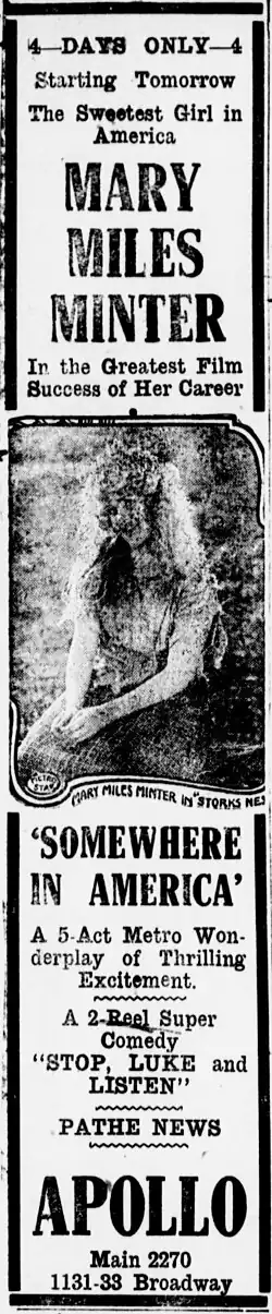 2. ^ "Somewhere in America". Wid's Films and Film Folk. 3 (31). New York City: Wid's Films and Film Folk, Inc.: [1] August 2, 1917.