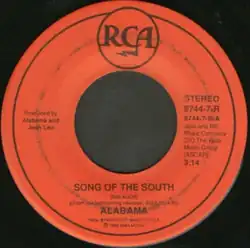 "Song of the South" is a song written by Bob McDill. First recorded by American country music artist Bobby Bare on his 1980 album Drunk & Crazy, a version by Johnny Russell reached number 57 on the U.S. Billboard country chart in 1981. Another cover by Tom T. Hall and Earl Scruggs peaked at number 72 in 1982 from the album Storyteller and the Banjo Man. A cover released in November 1988 by American country music group Alabama, from their album Southern Star, reached number 1 on both the U.S. and Canadian country charts.