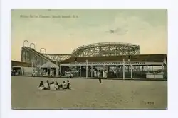 By the mid-1880s, South Beach's amusement area consisted of a 1,700-foot (520 m) boardwalk, a beach, and numerous rides.[27] After much of the area was destroyed by a fire in September 1896,[28][29] the 15-acre (6.1 ha) Happyland Amusement Park, an enclosed park with numerous attractions and landscape features, opened on June 30, 1906.[24][30] Among the park's attractions were a beachfront of 1,000 feet (300 m), a 1,500-foot (460 m) pier, a 30-foot-wide (9.1 m) boardwalk, a system of over 10,000 lights, and numerous attractions and roller coasters.[29]