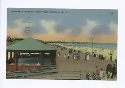 Midland Beach, located southwest of South Beach, became a resort by the 1890s[31] when the South Beach Branch came to the area. It contained a 1,700-foot (520 m) pier jutting into the Atlantic Ocean, where visitors could catch the steamboat William Story to the Battery at the tip of Lower Manhattan.[32] The pier was so long that the Midland Beach Railway Company operated a miniature railroad to take fishermen and other visitors to the end of the pier.[32][33] Like South Beach, it offered theater performances, a beach, picnicking areas, snack kiosks, numerous hotels and bungalows, and several amusement attractions and roller coasters.[34] The beach also contained a boardwalk.[35]