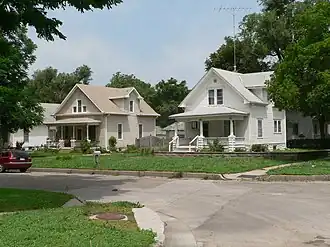 The South Bottoms Historic District is a residential neighborhood of Lincoln, Nebraska. The district includes 1050 contributing structures, with a relatively small proportion of 148 non-contributing structures. The neighborhood was settled primarily by Volga Germans in the late 19th and early 20th centuries. The houses are primarily wood-framed single-family residences, with some commercial structures on F Street between 2nd and 5th Streets. The houses mix vernacular American house construction with wood frame traditions brought from Russia by the residents. The neighborhood is roughly bounded by A and M Streets from Eighth Street to the city limits.[2]