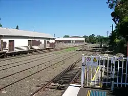 The large area of Crown Land now comprising the Royal National Park was gazetted as a National Park in 1879, only the second such area in the world.[42] In 1886 the need for a training ground for the New South Wales infantrymen, riflemen and artillery, prompted the construction of a short branch line into the National Park. It opened on 9 March 1886 along with the extension of the Illawarra Line from Sutherland to Waterfall,[43] and first served passengers at an army camp open day around a month later. The station featured a single station, originally called Loftus, with two terminal roads, several goods sidings and a loading bank to cope with the heavy artillery equipment.[34] A regular service to the Park serving tourists commenced in May 1886, and a short section of the line was duplicated in 1899 to service the multiple trains that travelled there on weekends. When the Illawarra Line was electrified in 1926, this branch was included being the southern extremity until 1980.[7][17]