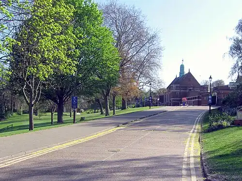 Whitgift School was founded in 1596 by the Archbishop of Canterbury John Whitgift and opened in 1600[44] as part of the Whitgift Foundation, which had the aim of building a hospital and school in Croydon for the "poor, needy and impotent people" from the parishes of Croydon and Lambeth.[45] Originally located in North End, Croydon in 1931 it moved to its current site, Haling Park, which was once home to Lord Howard of Effingham, the Lord High Admiral of the Fleet sent against the Spanish Armada.[46]