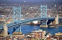 South Jersey and the wider Philadelphia metropolitan area are situated near the center of the Northeast megalopolis and have become a U.S. East Coast epicenter for logistics and warehouse construction;[6] Salem County, the lower portion of Gloucester County, and the upper portion of Cumberland County additionally serve as residential communities for the petrochemical industry of New Castle County, Delaware. South Jersey shore communities, including Atlantic City and others in Atlantic and Cape May counties, have a distinct economy centered around the tourism industry. Burlington, Camden, and Gloucester counties have several older streetcar towns, and many residents from these three counties commute to Philadelphia, the nation's sixth-most populous city, which is located immediately west of South Jersey across the Delaware River, accessible by the Benjamin Franklin Bridge, Betsy Ross Bridge, Tacony Palmyra Bridge and Walt Whitman Bridge.
