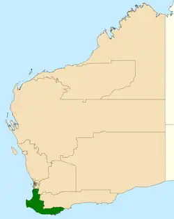 5. ^ Western Australian Electoral Commission (WAEC) (29 October 2007). "South West Region Profile". Retrieved 22 October 2008.