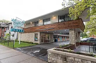 From then into the 21st century, the motel became associated with crime and drugs; before the renovation, it rented rooms by the hour.[4] In 1996, a guest was killed after leaving the Tremont Lounge, a nearby gay bar, with a companion.[7] In 2002, a motel clerk was shot during a robbery at the motel office. A firefighter testified he and a male lover attempted to buy cocaine from the two suspects, and later smoked cocaine in the motel with his lover while on duty.[8][9] In the 2010s, the surrounding area gentrified, with numerous bars and eateries opening near the Tremont, including a high-end restaurant and a brewery with a bar.[10]