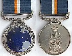 The Southern Cross Medal of 1952, post-nominal letters SM, is a South African military decoration which was instituted by the Union of South Africa in 1952. It was awarded for outstanding devotion to duty and was originally available to all ranks, but from 1967 until July 1975, when it was discontinued, it was reserved for officers.[1]