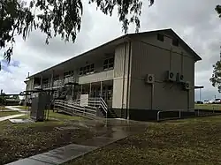 Hawksley prefabricated school buildings were prefabricated classrooms imported by the DPW from Hawksley Construction Co. of Gloucester, England, in response to materials shortages and the pressures of the baby boom.[36] Across Australia, £1.5 million worth of Hawksley prefabricated buildings for schools, offices, hospitals and bungalows had been delivered by November 1951.[37] Between 1952 and 1958, a total of 27 Hawksley prefabricated school buildings (90 classrooms) were imported by the DPW; initially intended to provide classroom accommodation at high schools and technical colleges, they were also erected at primary and infants schools across Queensland.[38] Hawksley buildings were erected at Mount Isa State High School, Gladstone State High School, Cavendish Road State High School and Southport State High Schools; Ironside State School, Maryborough Central State School and Ithaca Creek State School; and Junction Park Infants State School, many of which have since been demolished.[1][39]
