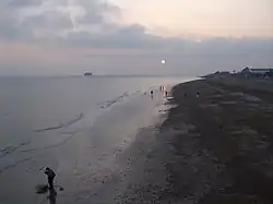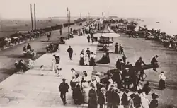 Southsea continued to grow eastwards in the early 20th century, extending to the area of Eastney. During this time significant local public buildings were constructed including the Queens Hotel, in the Edwardian Baroque style built in 1903 and the Kings Theatre built in 1907. The onset of World War I saw an increase in fortifications on the seafront. Parades were held on Southsea Common. Southsea continued to thrive as a resort destination and a suburb of Portsmouth in the inter-war years, with many visitors in summer. At that time parts of the Common were converted into ornamental gardens and the Ladies' Mile was set out in 1925.[27] However World War II had an immense impact on the urban and social fabric of the area. Huge areas of Southsea were destroyed by bombing during The Blitz. Although some of Victorian Southsea escaped the bombing, areas such as the Kings Road and Elm Grove were extensively damaged and the Palmerston Road shopping areas were completely destroyed. The beachfront, piers and promenades were closed for the duration of the war.[28] Following the end of the war, in 1945 Southsea and the rest of Portsmouth embarked on a massive clearance and rebuilding scheme. Many areas of destroyed, damaged and intact low-income housing were cleared to make way for new building schemes. The Kings Road Estate and Roslyn House, among others, were developed between 1945 and the 1970s. Palmerston Road shopping area was developed in the 1950s and still stands today.[29] Although visitor numbers to the resort area never recovered, Southsea continued to develop throughout the 20th century and today remains a mixed residential area and leisure destination.[30]