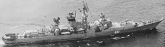 Admiral Nakhimov (Russian: Адмирал Нахимов) was a Project 1134A Kresta II-class cruiser of the Soviet Navy, named for Russian naval commander Pavel Nakhimov. The third ship of her class, the ship served during the Cold War, from 1971 to 1991. She served with the Northern Fleet for the duration of her career, often operating in the Atlantic and the Mediterranean in order to show the flag. She was decommissioned in 1991 before being sold for scrap due to reduced naval funding in 1993.