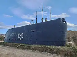 In 2006, a section of K-19 was purchased by Vladimir Romanov, who once served on the submarine as a conscript, with the intention of "Turning it into a Moscow-based meeting place to build links between submarine veterans from Russia and other countries."[14] In 2023, The Athletic reported that Romanov had refurbished the submarine to serve as his place of residence in Nikul'skaya, described as a village in northwestern Russia.[15]