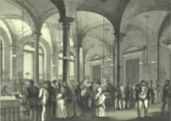 The savings bank purchased a building at the corner of Niels Hemmingsens Gade (No. 24) and Løvstræde (No. 7) in 1864. The building was in 1866-1868 adapted for use as new bank headquarters by architects Vilhelm Klein (1835-1913) and Hans Conrad Stilling (1815-1891). It was inaugurated on 18 November 1870. The building was by the same architects expanded Valkendorfsgade in In 1872-1873 and again in 1879. Another refurbishment of the building took place in 1911-1913 under supervision of the architects Albert Oppenheim (1879-1956) and Hans Wright (1854-1925).[2]