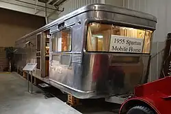 After the ebb of personal aviation and the increased competition in the aircraft business following World War II, owner J. Paul Getty and Spartan upper-management redirected production to focus on the demand for housing and leisure.[2] Using the same internally braced and space-saving monocoque design of the Spartan Executive 7W, the company produced its first all-metal travel trailer. The company followed previous design strategies, offering lavish and full-featured trailers. Through the 1940s and 1950s, Spartan produced what some referred to as the "Cadillac" of trailers, commanding prices higher than $4000.[6] Spartan produced over 40,000 trailer homes before ending production in 1961. Given an average home cost in the United States at the time of $8000, Spartan trailers were a discretionary purchase for the wealthy.[7]