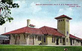 ![]() Spokane International Railway, and Oregon Railroad and Navigation Co station, Spokane, Washington, 1910 | |