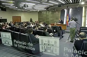 The Spokesperson of the Government of Spain is a high ranking post in the Government of Spain whose purpose is to inform and communicate to society the political and institutional action of the central government. Its headquarters is located in the denominated Complex of La Moncloa. Currently the holder of the position enjoys the rank of Minister.
